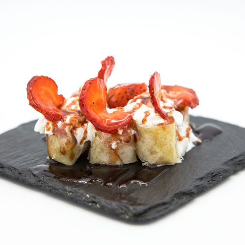 E alla fine arriva il dolce. Un peccato di gola da provare. Croccante pasta sfoglia accompagnata da trionfo di golosità: nutella, banana e fragola.